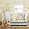 4-piece set includes a comforter, bumper, crib sheet and dust ruffle. . Available coordinating accessories including a window valance, diaper stacker, toy bag, decorative pillow, bolster pillow, lamp shade and mobile. . Comforter and fitted sheet are made of 50% cotton and 50% polyester. The bumper and dust ruffle are 100% cotton. . Made in the USA . Care Instructions: Machine wash, tumble dry low .The MiGi "Sweet Sunshine" 4-Piece Baby Bedding Set by Bananafish features a bright and vibrant combination of grays and yellows. Cotton sheeting, faux suede, corduroy and velour are used to create flowers, birds and vines in a contemporary design.